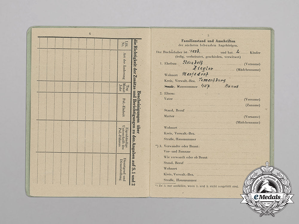 A Soldbuch To Partisan Fighting Hilfspolizei Constable Josef Müller, Sen.