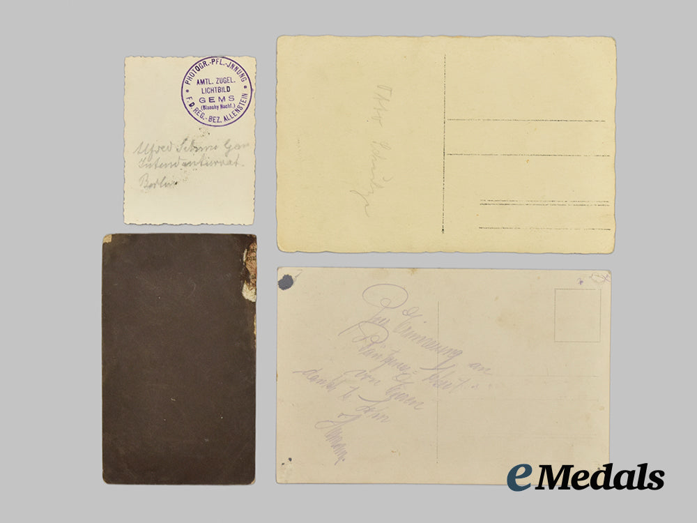 8. One group photograph of members of Garde-Kavallerie-Schützen-Division, in uniform and with collar tabs clearly visible, the reverse in postcard format and bearing a handwritten dedication with a date of “1919”, measuring 13 cm (w) x 9 cm (h), in near extremely fine condition.