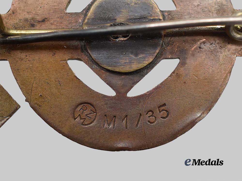 3. A 1939 NSDAP Oberdonau (Upper Danube) inaugural Kreistag (Regional Day) badge, constructed of bakelite, vertical pinback, the reverse maker marked “RICHARD SIEPER & SÖHNE, LÜDENSCHEID”, with an RZM logo and maker code “M9/25” for the same manufacturer, measuring 33 mm in diameter, in extremely fine condition.
