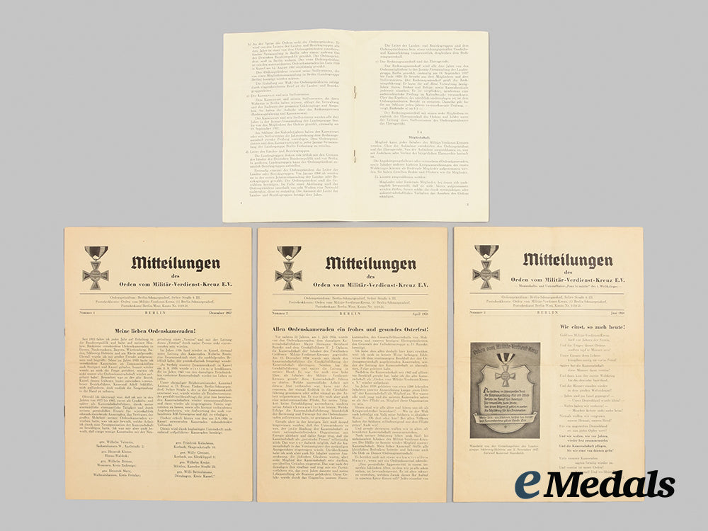 16. A lot of three newsletters from a Golden Military Merit Cross recipients fraternal organization, dated for the years 1957 and 1958, accompanied by a postwar copy of the statutes of the Golden Military Merit Cross, an interesting accompaniment in overall extremely fine condition.