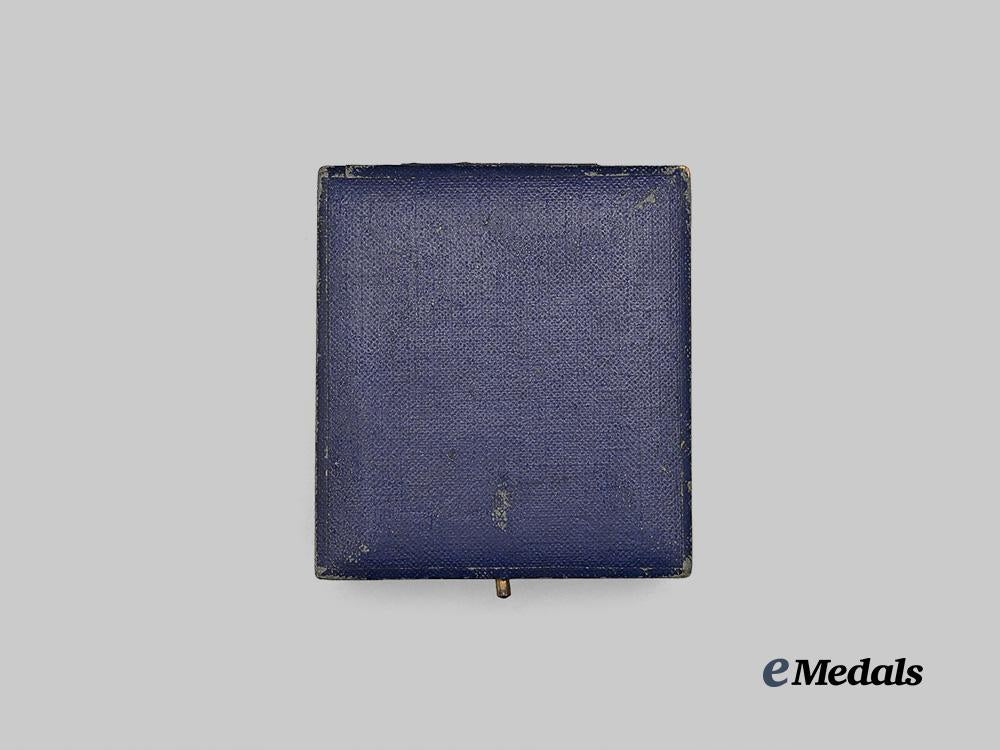 (Etui zum Beobachterabzeichen der Luftwaffe). Constructed of pressed card stock with a faux dark blue leather exterior liner, the lid bearing a silvered inscription of “BEOBACHTERABZ.”, the interior with a blue felt lid lid and slotted blue felt medal bed, closing with a functional metal spring catch with exterior stud release, unmarked but demonstrating the characteristics of a design credited to Gebrüder Wegerhoff, Lüdenscheid, measuring 72 mm (w) x 80 mm (l) x 22 mm (h), demonstrating minor material fatigue to both the interior and exterior, a mid- to late-war example in very fine condition.