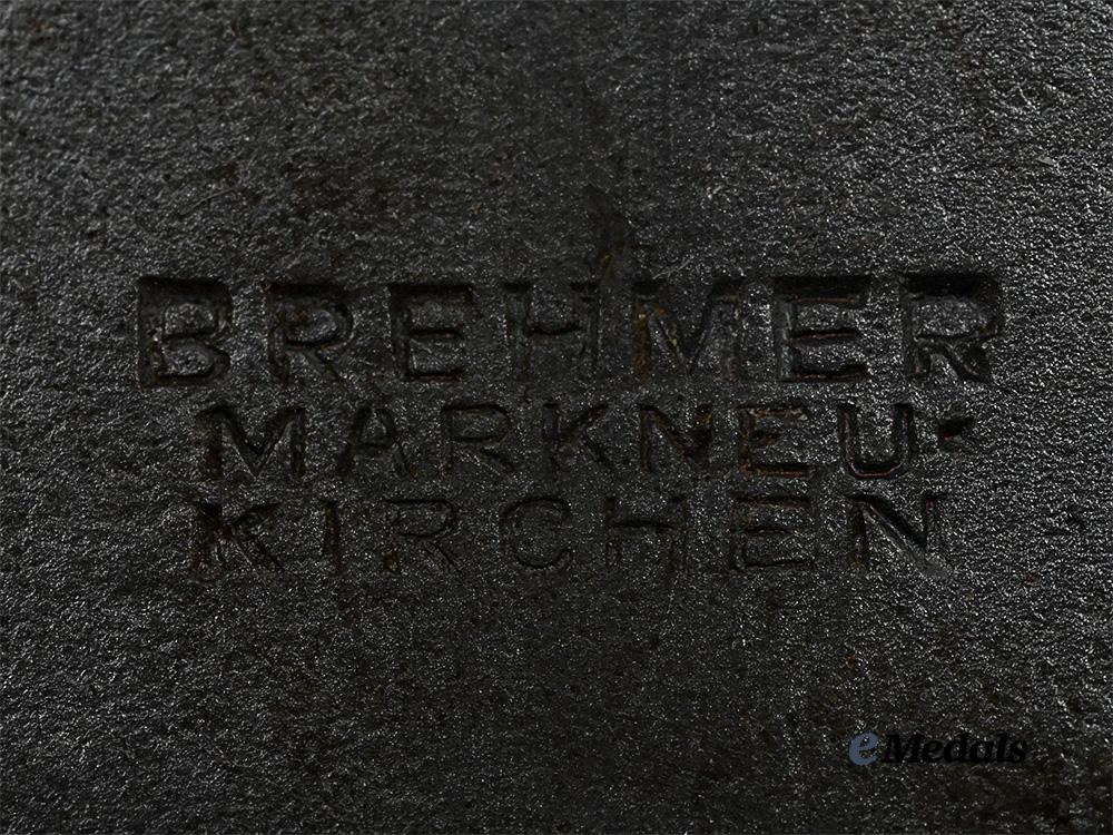 (Flak-Kampfabzeichen der Luftwaffe). Constructed of nickel silver, the obverse consisting of an oval oak leaf wreath, joined together at the bottom by ribbon, topped by a Luftwaffe eagle clutching a mobile swastika, surrounding a central Flak 88 with its barrel raised and extending beyond the edge of the wreath, the reverse with a raised barrel hinge and vertical pinback meeting a flattened and rounded catch, maker marked “G. BREHMER, MARKNEUKIRCHEN”, measuring 48.28 mm (w) x 64.06 mm (h), weighing 38.0 grams, in extremely fine condition.