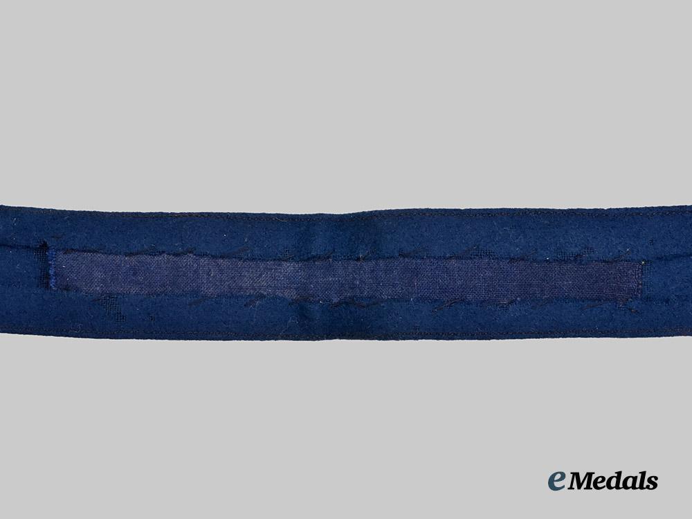 (Legion Condor Manschettentitel). Constructed of a strip of blue wool that is folded inwards on the top and bottom, with “Legion Condor” embroidered into the cuff title with silvery-grey embroidery, the reverse with a strip of matching blue cotton covering the underside of the embroidery, an uniform removed example in near extremely fine condition.