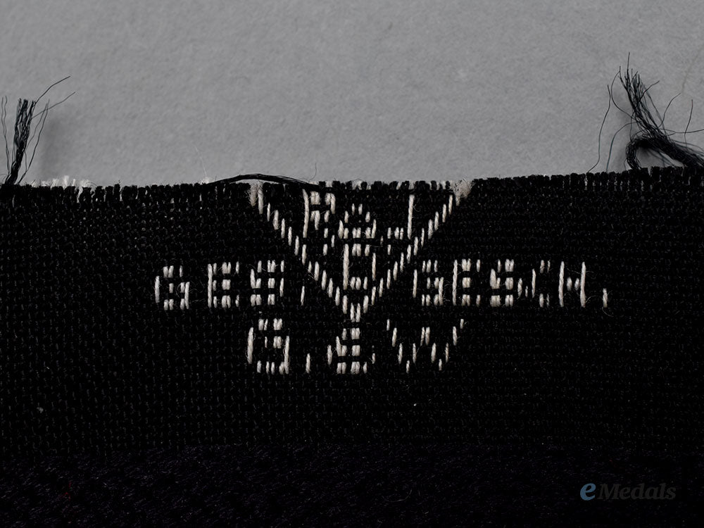 1. A unit insignia, constructed of black rayon with multi-coloured machine embroidery, the obverse bearing a Reichsleitung des Reichsarbeitsdienstes (RLAD) insignia, measuring 7.5 cm (w) x 11 cm (h), in unissued and near mint condition.