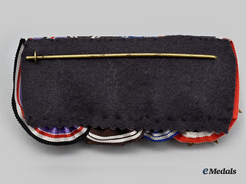 (Ordensschnalle). A medal bar for a Wehrmacht serviceman with distinguished NSDAP and civil defence service. It features four decorations, including: