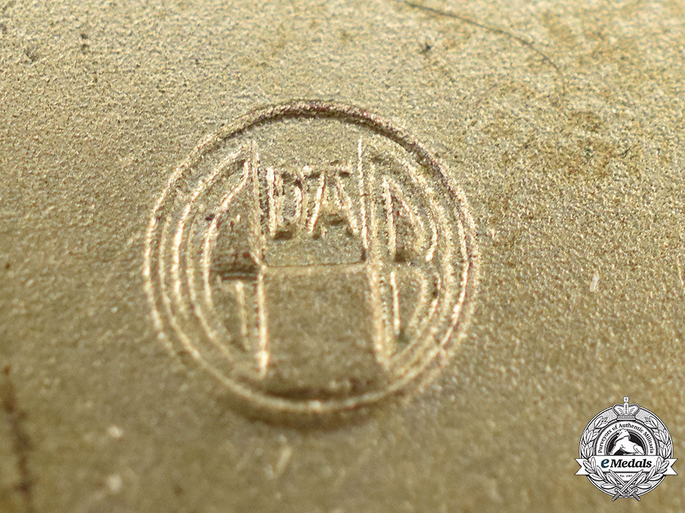 7. A German Handiworks badge, constructed of silvered bronze with enamels, horizontal pinback, the reverse maker marked with the logo of Gustav Brehmer, measuring 24 mm (w) x 36 mm (h), in extremely fine condition.