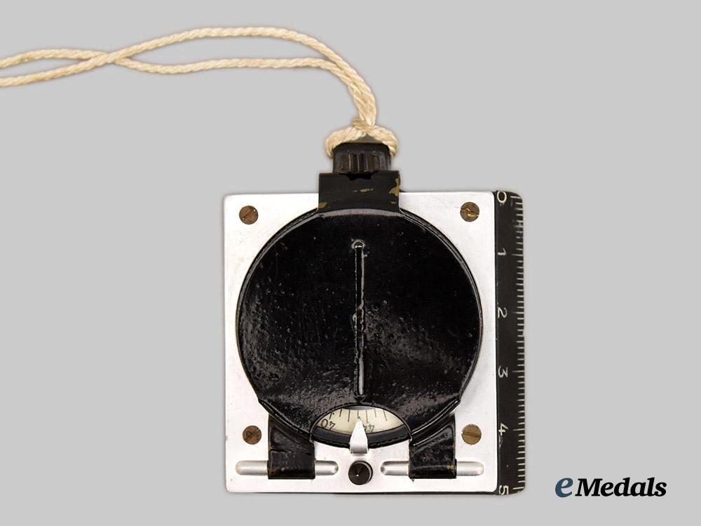 3. An HJ/youth organization compass, constructed of an aluminum casing, featuring a retractable non-magnetic metal lid revealing an intact transparent plastic face with directional markings around the circumference, measuring 52 mm (w) x 50 mm (l), in extremely fine condition.