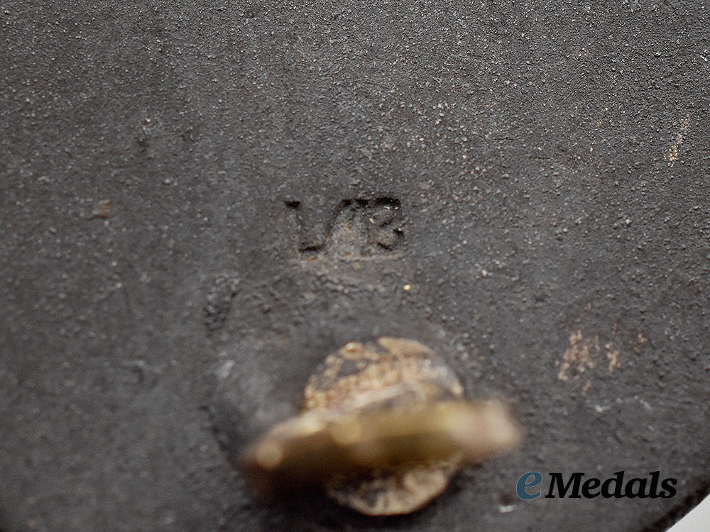 2. A Silver Grade Wound Badge, constructed of blackened bronze, the obverse consisting of an oval laurel leaf wreath, joined together at the bottom by ribbon, with a central raised Stahlhelm overlaid by a mobile swastika, on top of crossed swords on a pebbled field, the reverse with a raised barrel hinge and vertical pinback meeting a flat wire catch, maker marked with LDO code “L/13” for Paul Meybauer, Berlin, measuring 36.46 mm (w) x 43.83 mm (h), weighing 25.8 grams, demonstrating total loss of silver finish, in very fine condition.