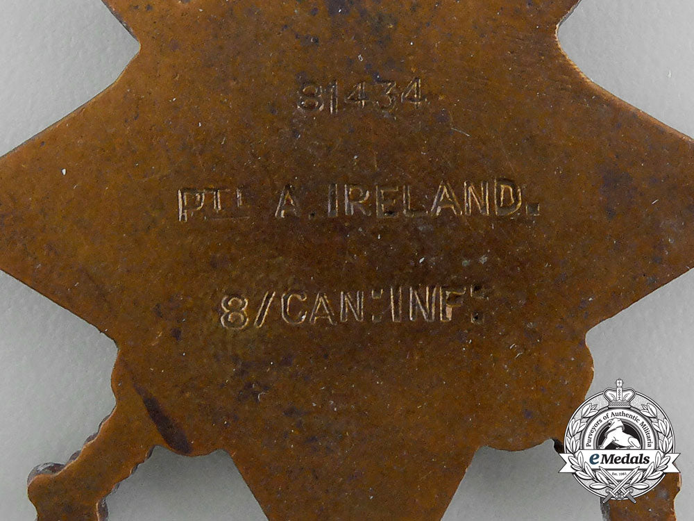 A 1914-15 Star To Private Alexander Ireland To The 8Th Infantry Battalion; Wounded 1915