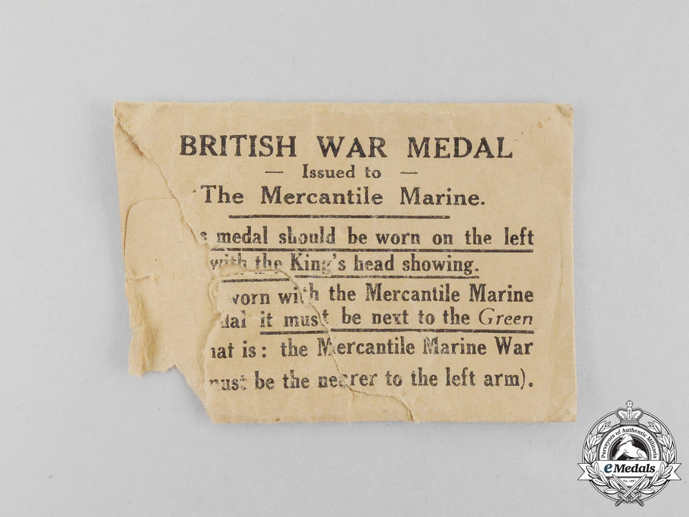 A British Mercantile Marine War Medal With Packet Of Issue, To Thomas J. Rowlands