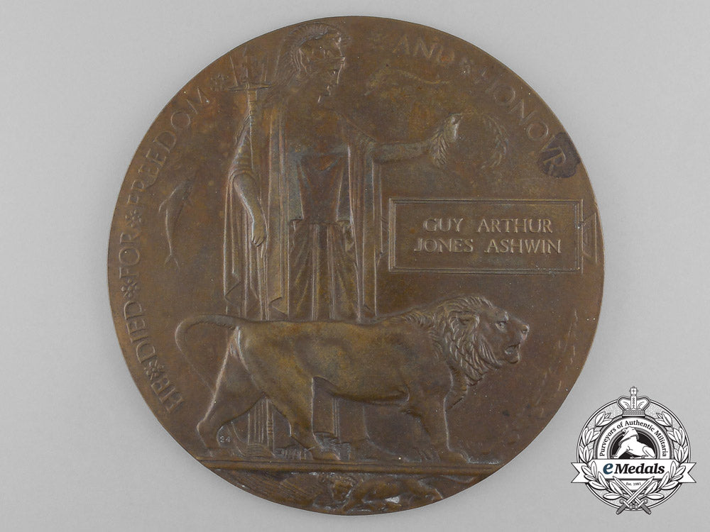A Memorial Plaque To Lieutenant Guy Arthur Jones Ashwin, "L" Flight, 1St Wing, Royal Air Force