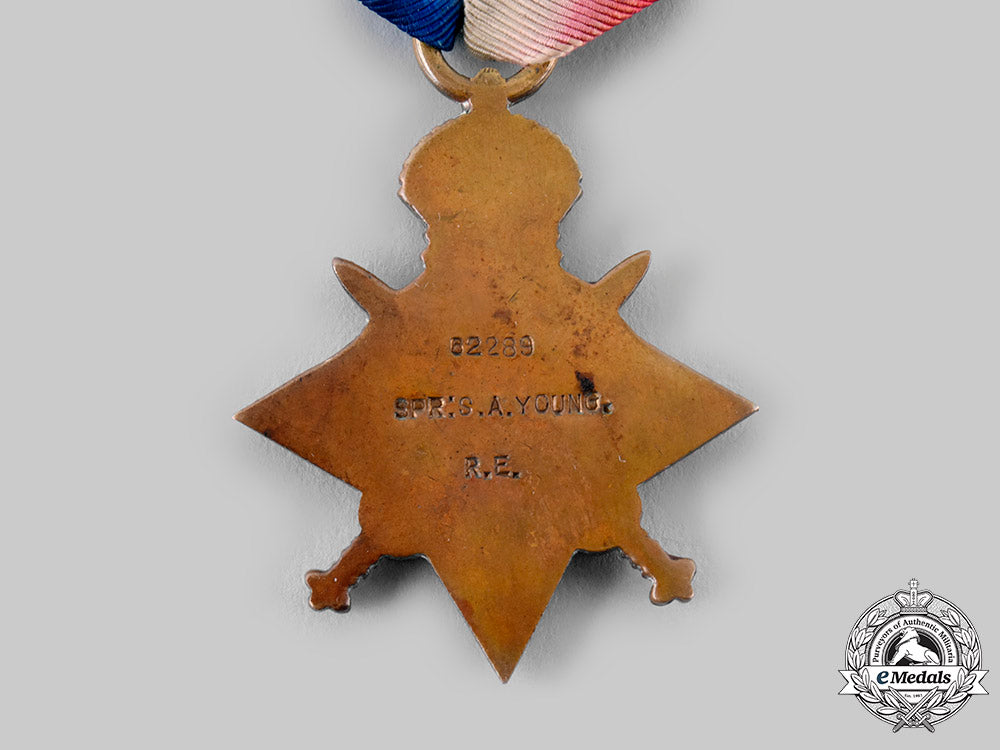 Footnote: 62289 Sapper Stanley A. Young, Royal Engineers entered the Egyptian theatre on July 19, 1915. For his First World War service, he awarded the 1914-15 Star, the British War Medal and the Victory Medal, as referenced on is Index Card.