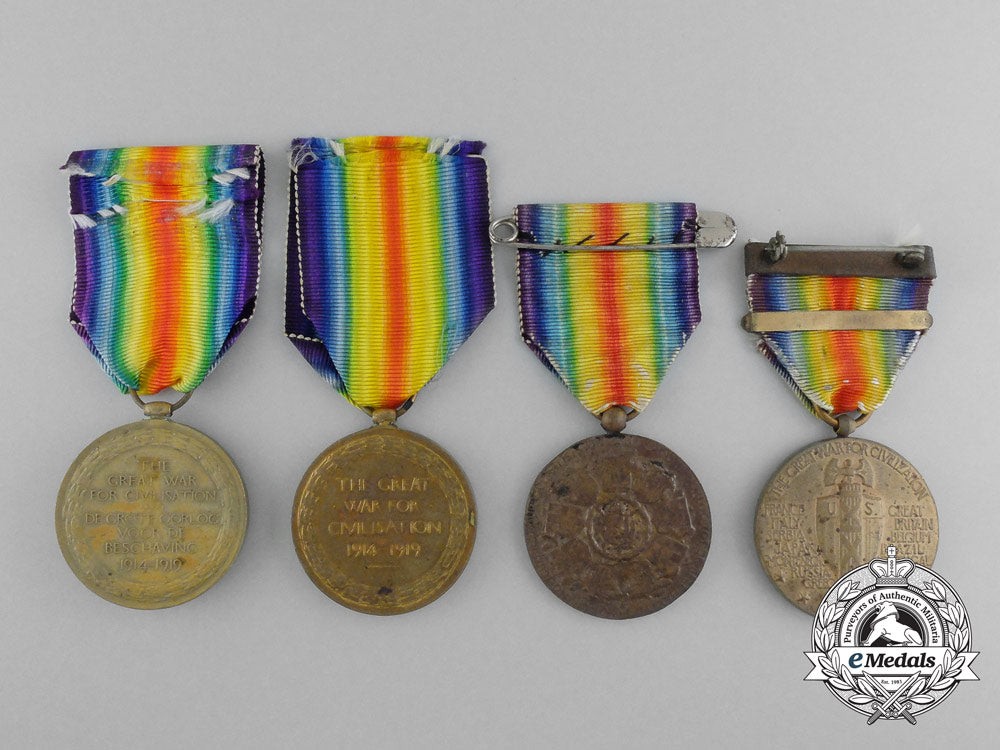 United Kingdom. A Lot Of Four First War Allied Victory Medals