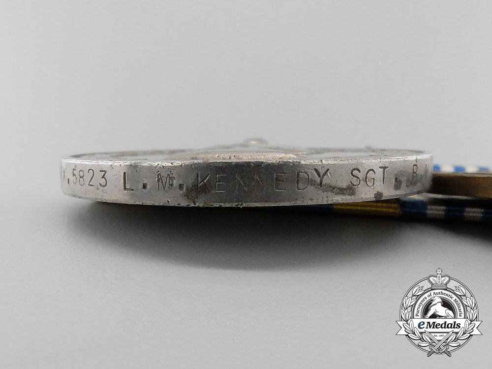 A Korean War Pair with U.S. Citation to the 41 Independent Commando Royal Marines, Special Forces; Korea Medal, First Obverse (PO/X.5823 L.M. KENNEDY SGT. R.M.); United Nations Korea Medal; with U.S. Presidential Unit Citation (Air Force and Army version) affixed. Naming is impressed in small serif capitals on the KM, the UNKM is un-named as issued. Court-mounted, original ribbons, edge nicks, contact marks, fine. Accompanied by a United Nations Photograph (black and white, gloss finish, reverse inscribed "(KOR:FSUN:ACT:UK*) / BRITISH COMMANDO UNITS IN KOREA / UN...33887 - British Commando units attached to the United Nations forces in Korea have made several daring raids deep into enemy territory. Here, during such a raid, Commandos of the 41st Royal British Marines struggle up a steep hill after landing near Songjin, in North Korea. They are going to destroy important enemy supply lines. Amtracks, operated by U.S. Marines, in which they landed are at right. / North Korea, April 1951. / Please credit: UNATIONS (from US Navy) / USN/pcd", 202 mm x 254 mm); a Letter from a Veteran, Sergeant P.D. (Pat) Murphy, 41 Independent Commando Royal Marines (two pages in handwritten black ink, dated July 20, 1987); along with copies of assorted research papers, including an article from the Australian Coin Review of May 1987, illustrating and discussing these medals.