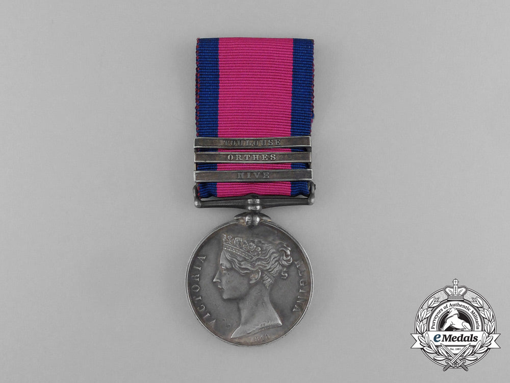A Military General Service Medal to 2nd Lieutenant Augustus Pfankuche, King’s German Artillery: NIVE, ORTHES, TOULOUSE (2: LIEUT. AUGUSTUS PFANKUCHE. K.G.L.). Naming is contemporary re-engraved in capitals. Replacement ribbon, pitted, light contact, very fine.