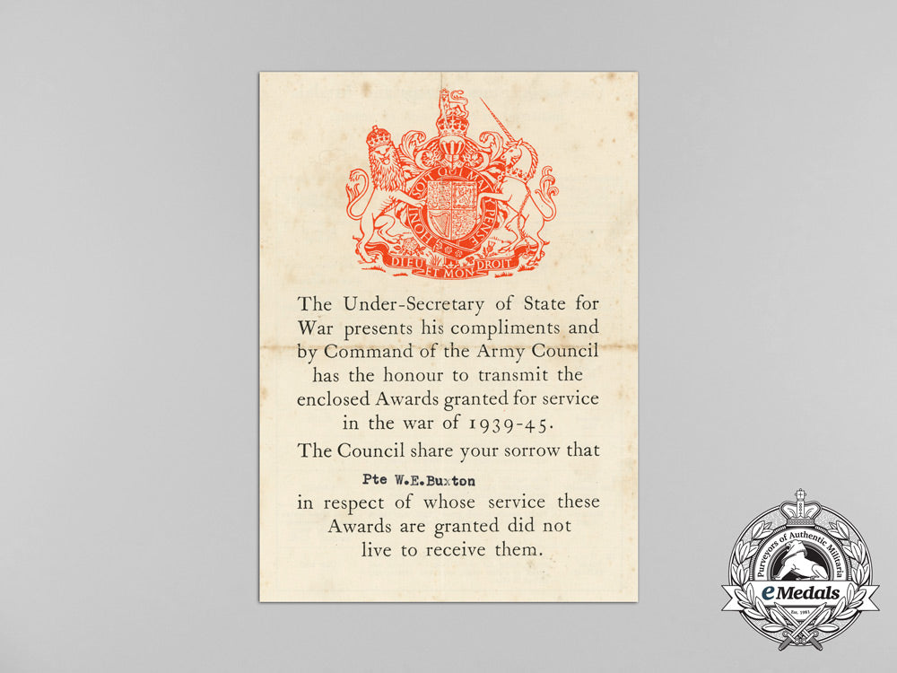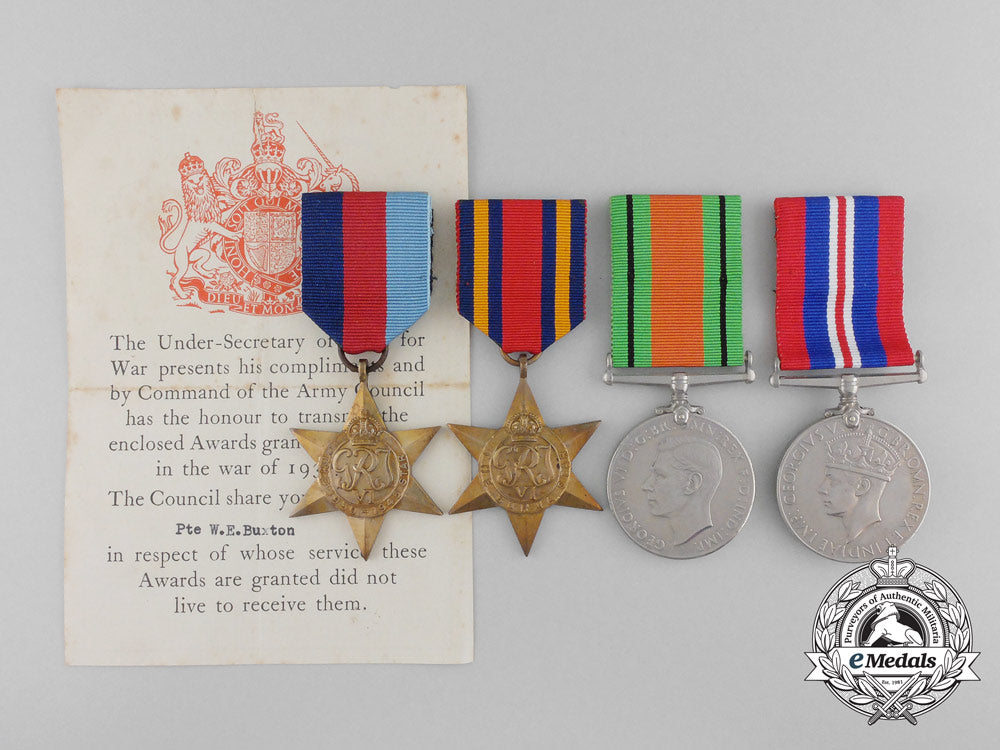 A Second War Grouping To Private Buxton; Border Regiment Kia In India 1944