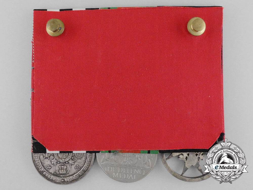 SSStJ, St. John Ambulance Brigade: Order of St. John, Serving Sister Breast Badge (silver, circular skeletal badge, eight-pointed cross set in a circular frame, 38 mm); Defence Medal (cupro-nickel, 36 mm); and Service Medal of the Order of St. John (silver, engraved "7739 L/A/OFFR. M. JOYCE NEWCASTLE (W) DIV. No 6 DIS. S.J.A.B. 1929.", 37.8 mm, three service clasps on the ribbon). Court-mounted, original ribbons, contact marks, better than very fine.