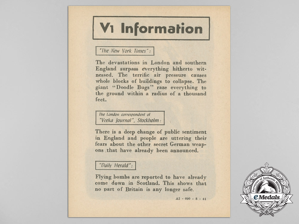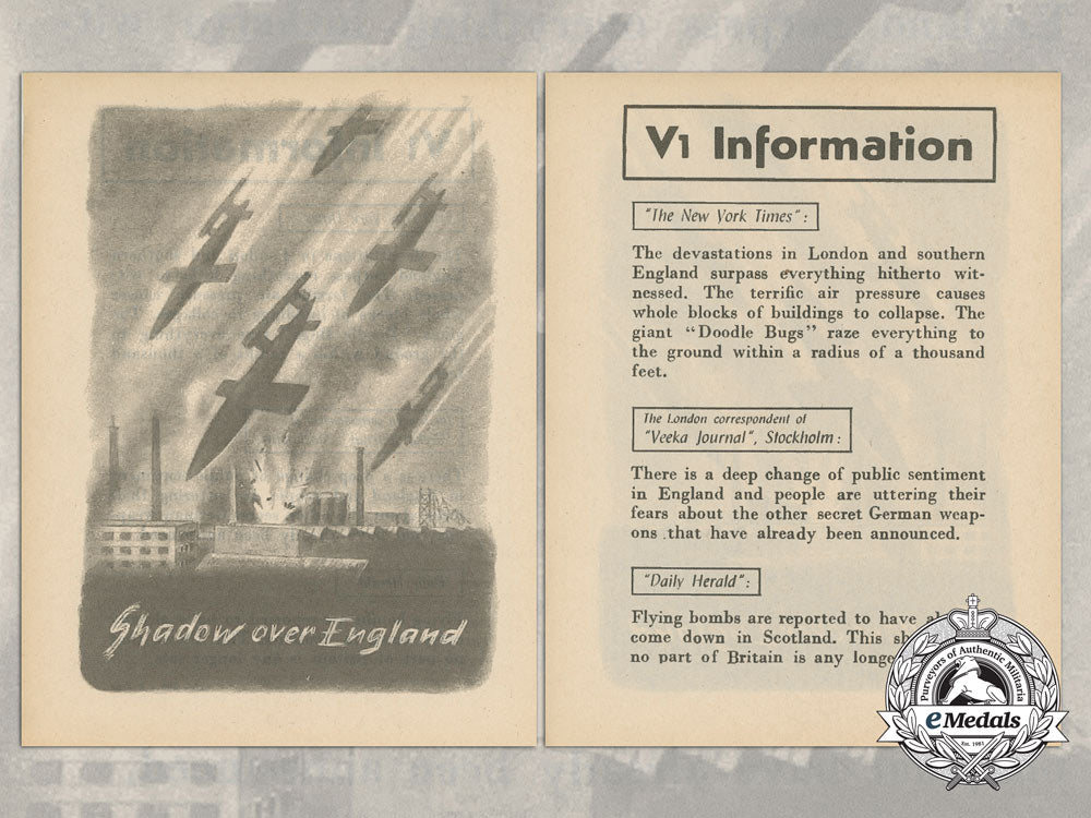 A V1 Rocket "Shadow Over England" Propaganda Campaign Leaflet 1944