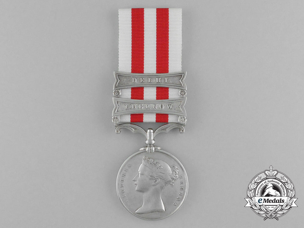LUCKNOW, DELHI (BENJn JOHNSON, 1st EURn BENGAL FUSrs). Naming is officially impressed in large capitals. Replacement ribbon, edge nicks, contact marks, better than very fine.
