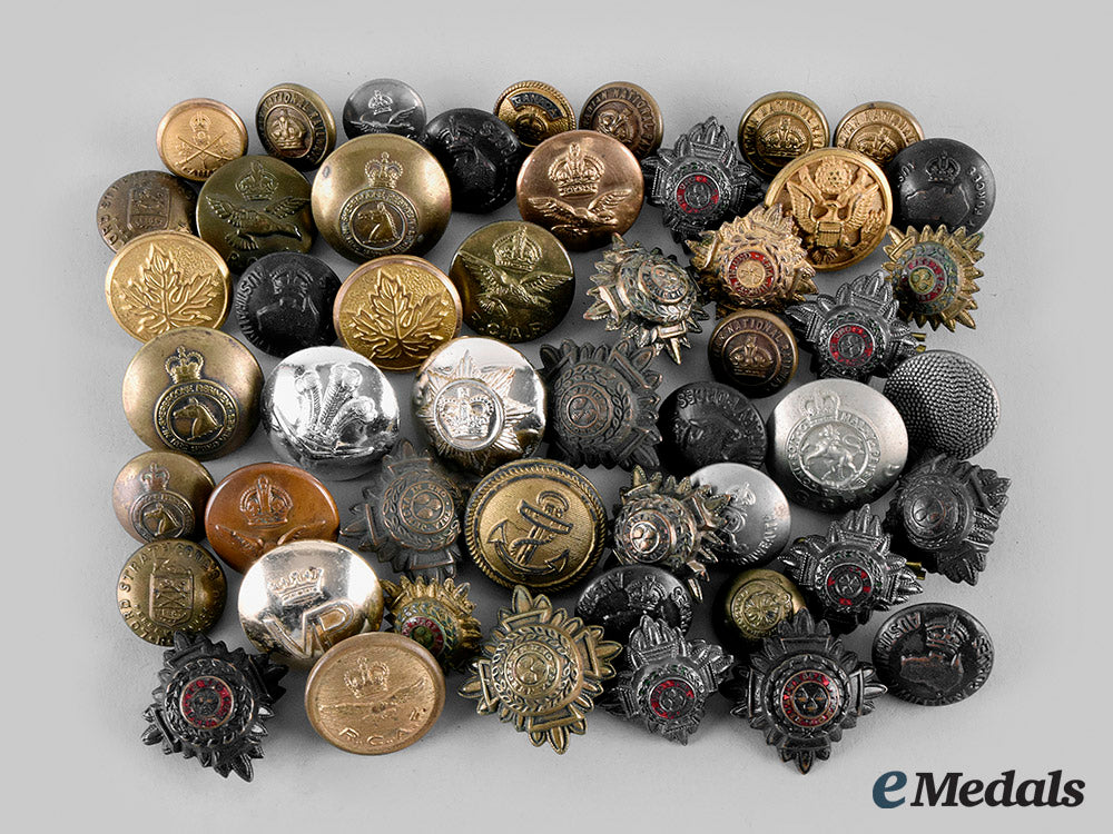 Australia, Canada, United Kingdom, United States. Lot Of Thirty-Five Regimental Buttons And Fifteen Pips