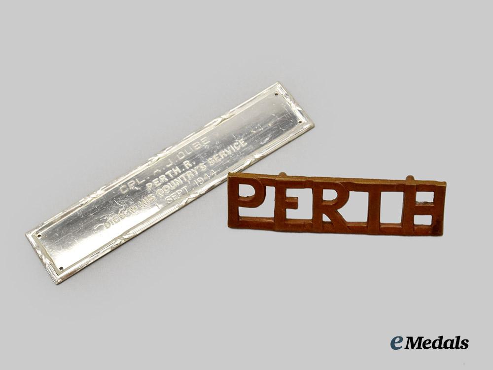 Canada, Commonwealth. A Perth Badge to Cpl. A.J. Dube, Died 1944