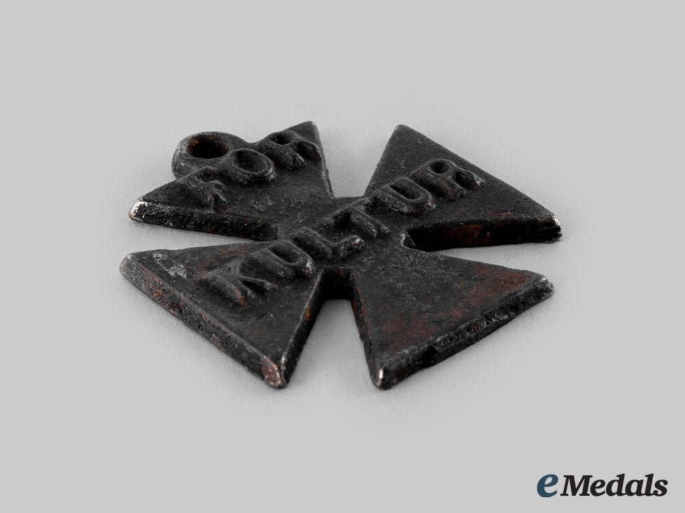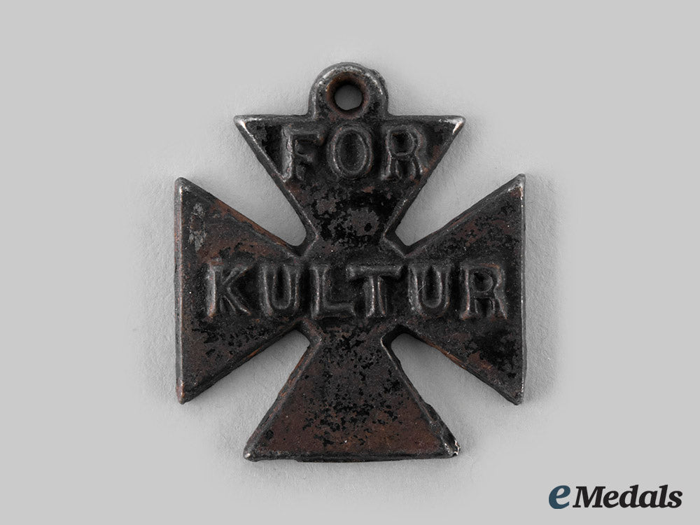 An iron cross paty constructed of iron, the obverse bears the inscription “FUR KULTUR” (FOR CULTURE), the reverse is plain ,with loop for suspension, measuring 41.16 mm (w) x 46.66 mm (h), fine.