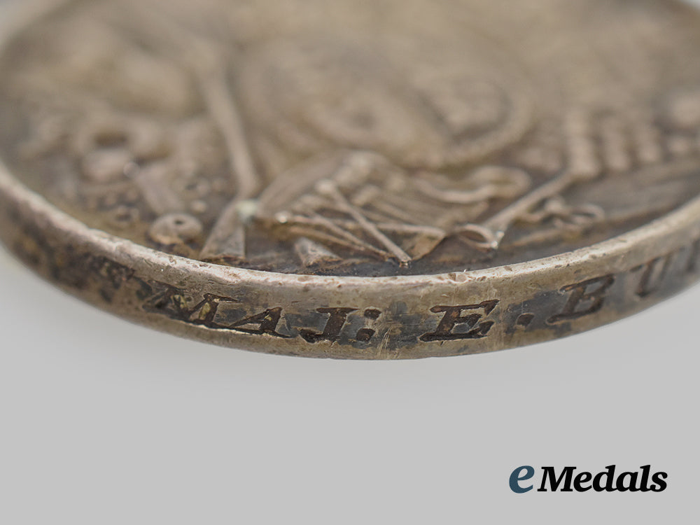 A Baltic Medal, in silver, suspension is loose and slides around rim, replacement ribbon, dark patina, edge bruises evident, in near very fine condition.