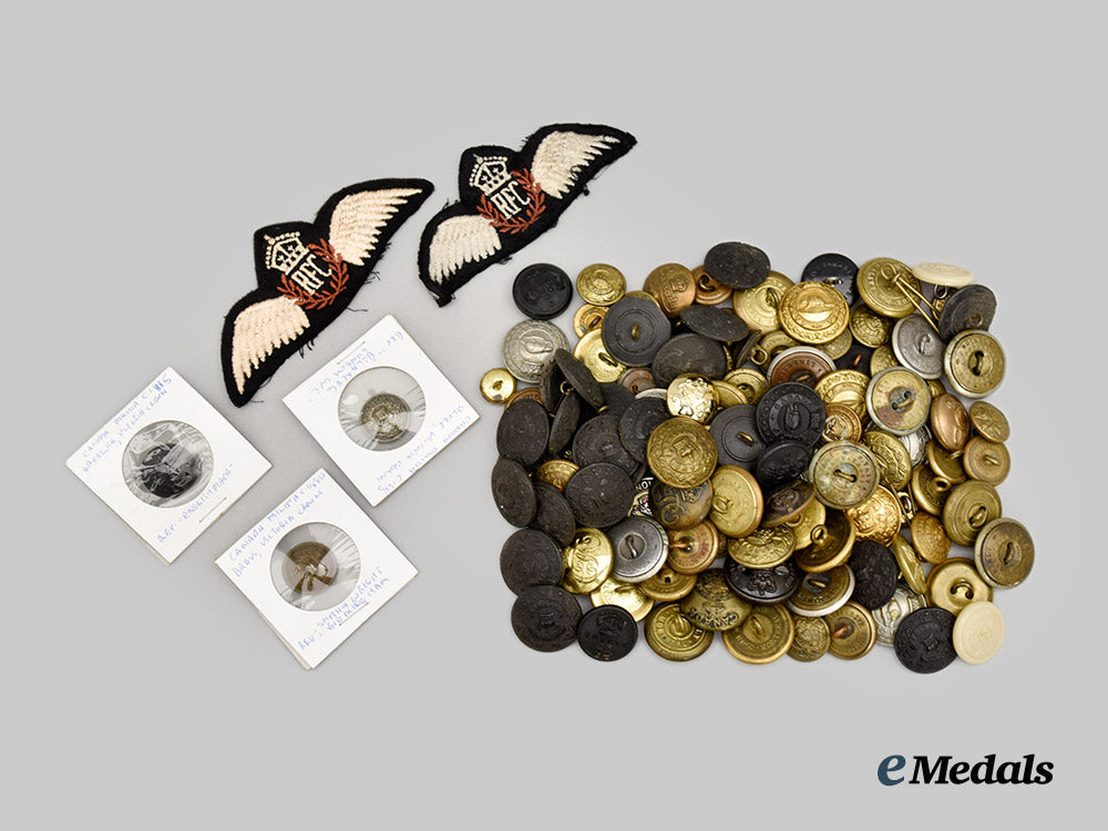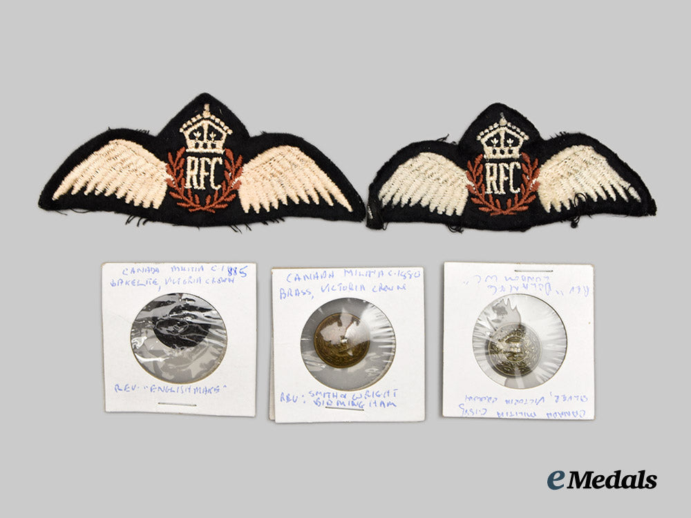 United Kingdom. A Collection of British and Canadian Livery Buttons with Royal Flying Corps Wing Insignia Patch