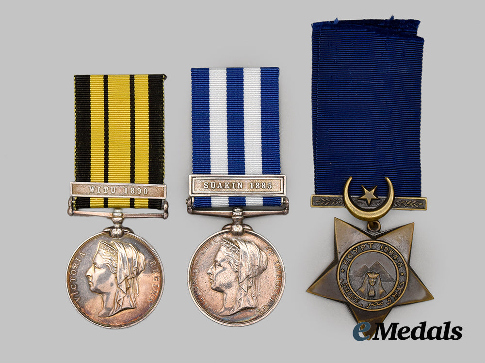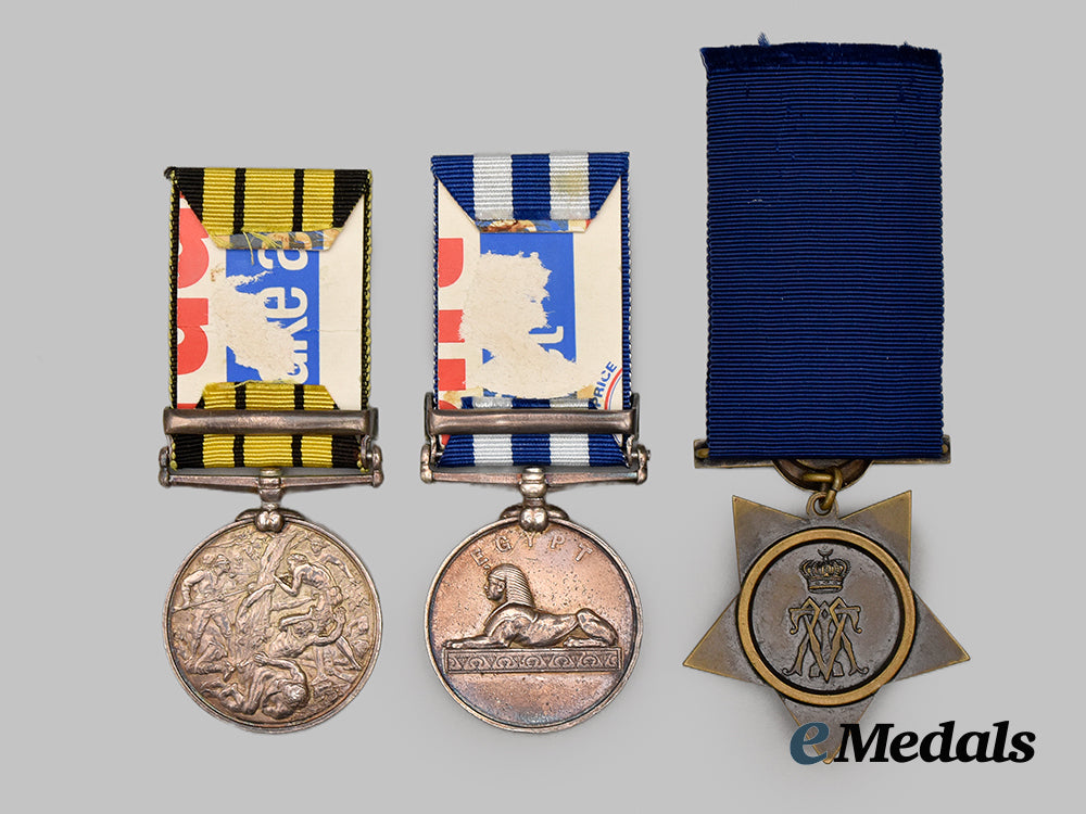 United Kingdom. A Egypt and Sudan Theatre Trio, to Gunner T.W. Eagle, Royal Marine Artillery, HMS Carysfort and HMS Boadicea