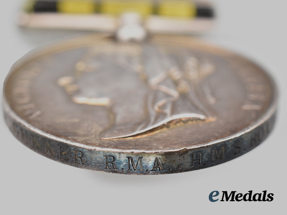 Egypt Medal 1882-1889, undated reverse (T.W. EAGLE, GUNr R.M.A. H.M.S. CARYSFORT.); Khedive's Star 1882-1891; and East and West Africa Medal 1887-1900, 1 Clasp - SUAKIN 1885 (T.W. EAGLE, GUNr R.M.A. H.M.S. BOADICEA.). Naming is officially impressed in large capitals on the Egypt Medal and the East and West Africa Medal, the Khedive's Star is unnamed as issued. Un-mounted, the two silver medals exhibit pitting, bruising, edge nicks, along with contact overall, the bronze Khedive's Star with spotting, replacement ribbons, very fine.