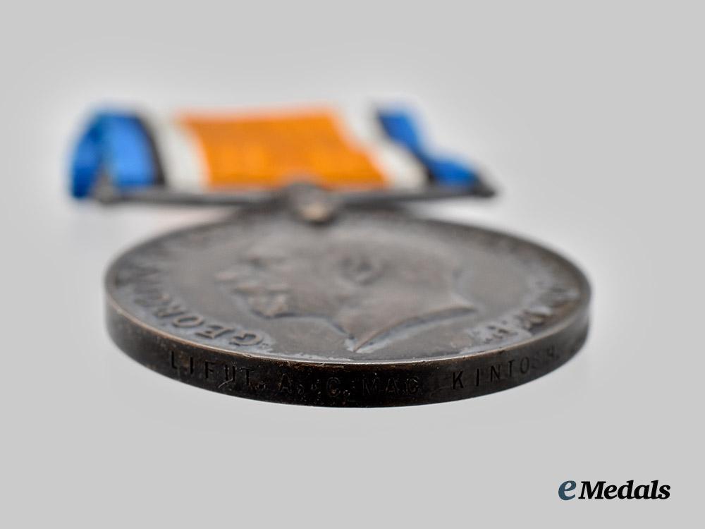A 1914-1918 British War Medal, silver, rim impressed LIEUT. A.C.. MAC KINTOSH., original ribbon, very dark patina, very fine.