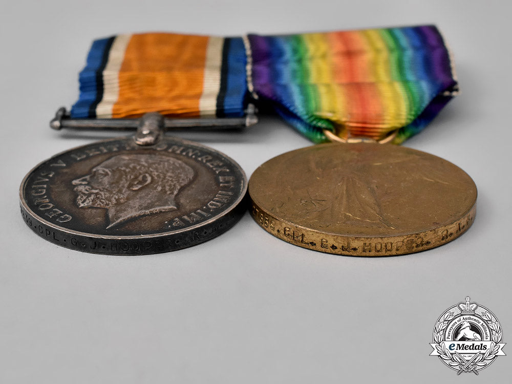 United Kingdom. A First War Pair, To Corporal G.j. Hooper, Royal Air Force