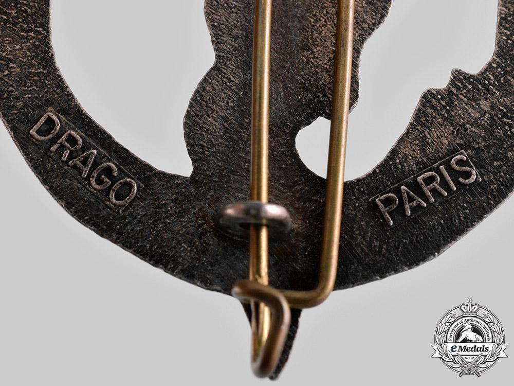 3rd Squadron, 1st Foreign Legion Cavalry Regiment Badge (in silvered metal, maker marked "A B Paris" (Arthus Bertrand, Paris" on the reverse, measuring 39.5 mm (w) x 37.5 mm (h), horizontal pinback);