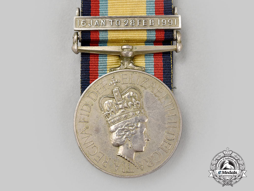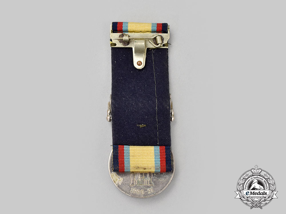 Footnote: The Gulf War Medal was a campaign medal approved in 1992, for issue to officers and men of British forces who served in Kuwait and Saudi Arabia during Operation Granby (the Liberation of Kuwait) in 1990-1991.
