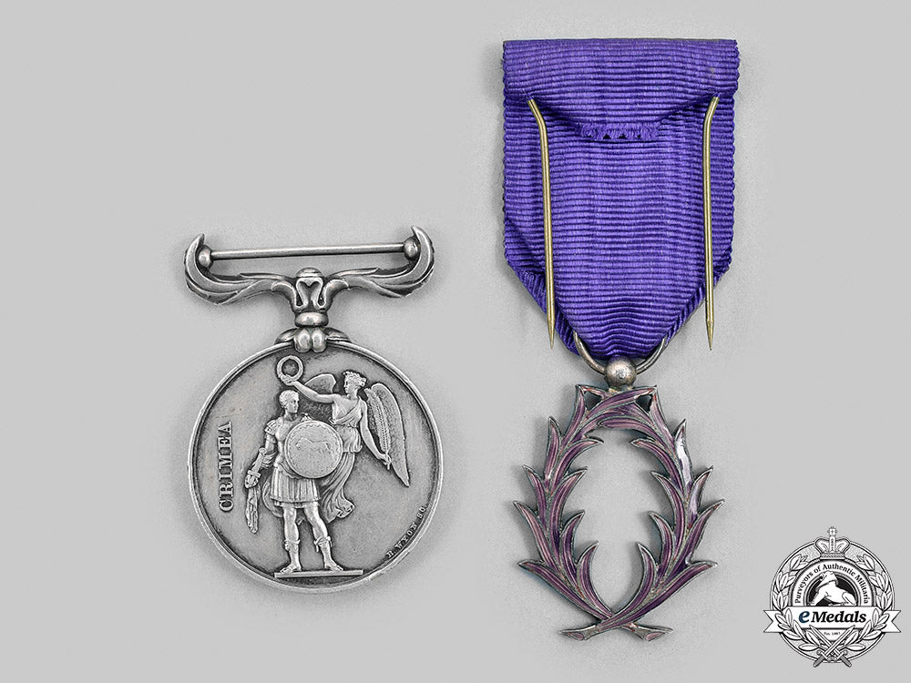 United Kingdom. A Lot Containing A Crimea Medal, French Order Of Academic Palms, Knight And Royal Victorian Order Case