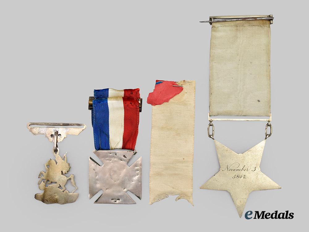 3. A Royal Arch Mason Badge, in nickel silver, reverse engraved November 3 5842, measuring 62.3 mm (w) x 78.6 mm (h - inclusive of suspension);