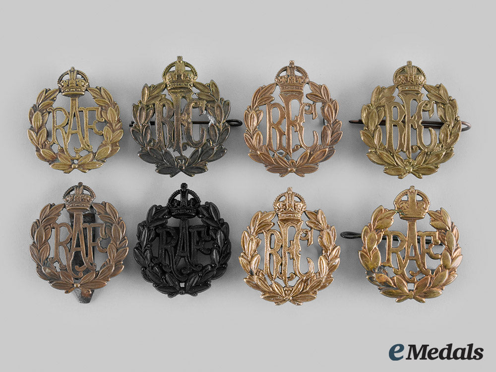 United Kingdom. A Lot Of Eight Royal Flying Corps (Rfc)/Royal Air Force (Raf) Cap Badges
