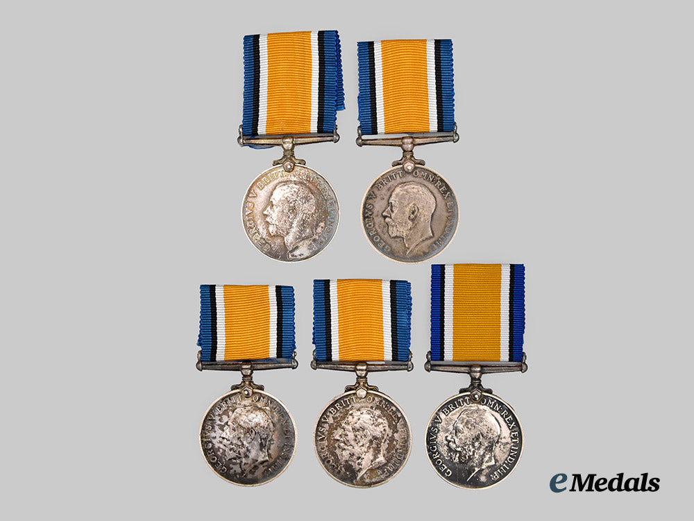 United Kingdom. A Lot of Five British War Medals