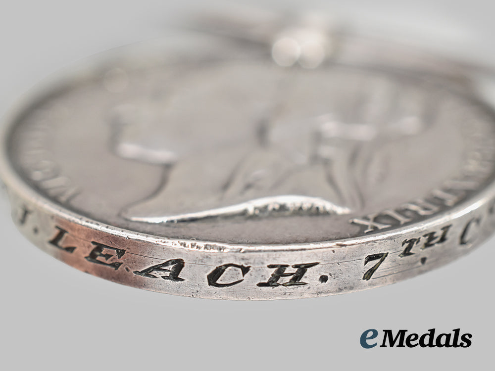 2. Egypt Medal 1881-1889, Un-dated, to Private J. Leach, 7th Company, Commissariat & Transport Corps (5627. Pte J. LEACH. 7th Co. C. & T.C.). Naming is engraved in italic capitals. Pitted, bruised, edge nicks, broken suspension.
