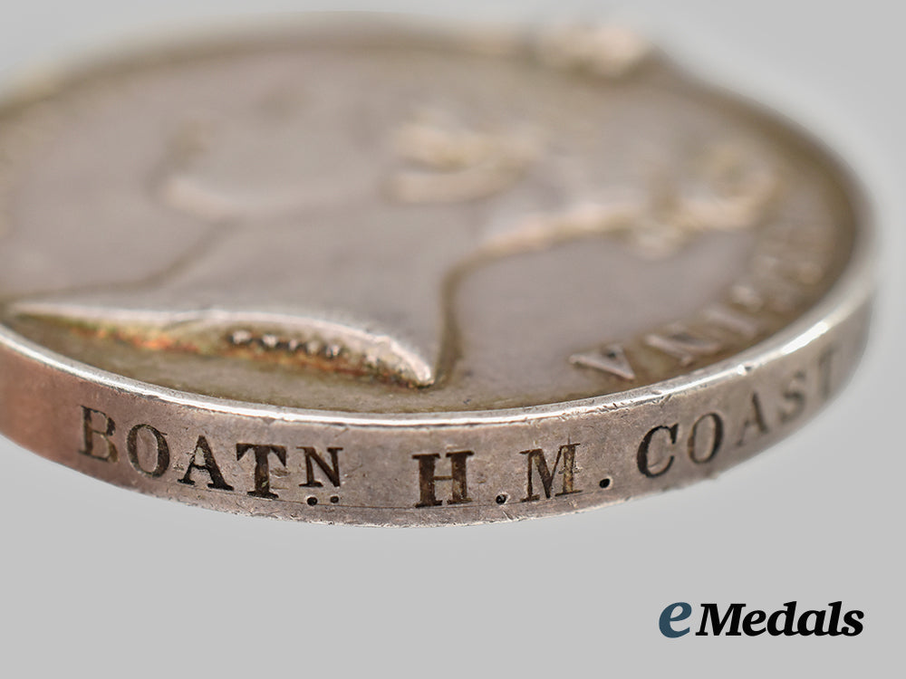 5. Royal Naval Long Service and Good Conduct Medal, to Boatswain William E. Coatsworth, Her Majesty's Coast Guard (WILLm E. COATSWORTH. BOATn H.M. COAST GUARD). Naming is impressed in large capitals. Contact marks, bruised, edge nicks, missing its suspension, accompanied by a research paper.