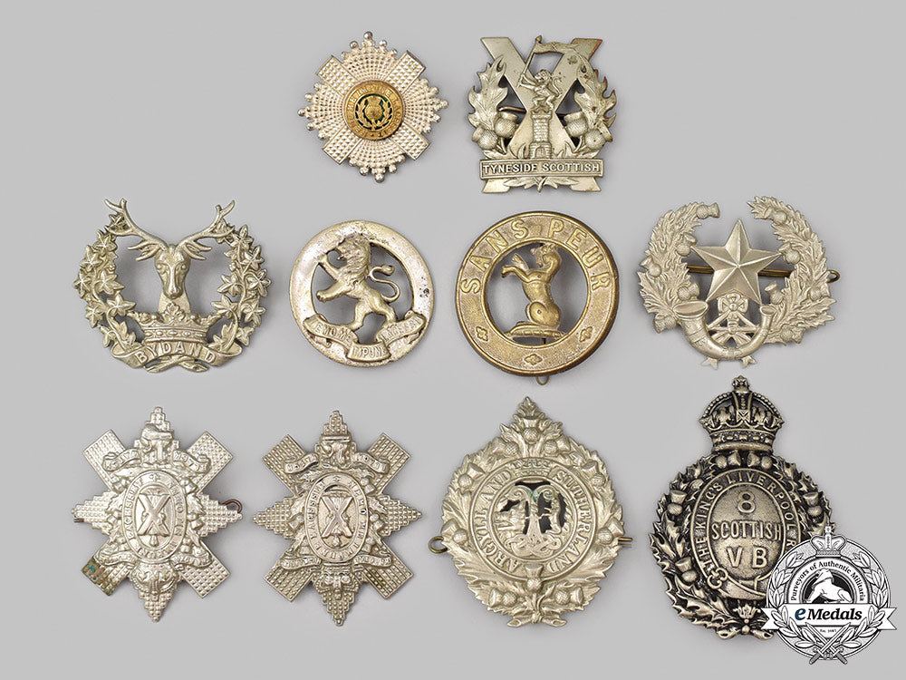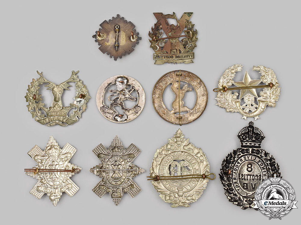 United Kingdom. A Lot Of Ten Cap/Glengarry Badges