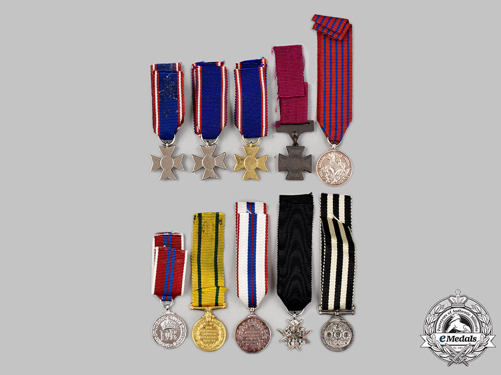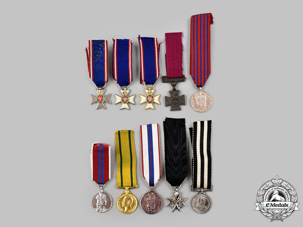 Intact enamels on all three Royal Victorian Orders, each of the ten awards are ribboned, ranging from fine to near extremely fine.