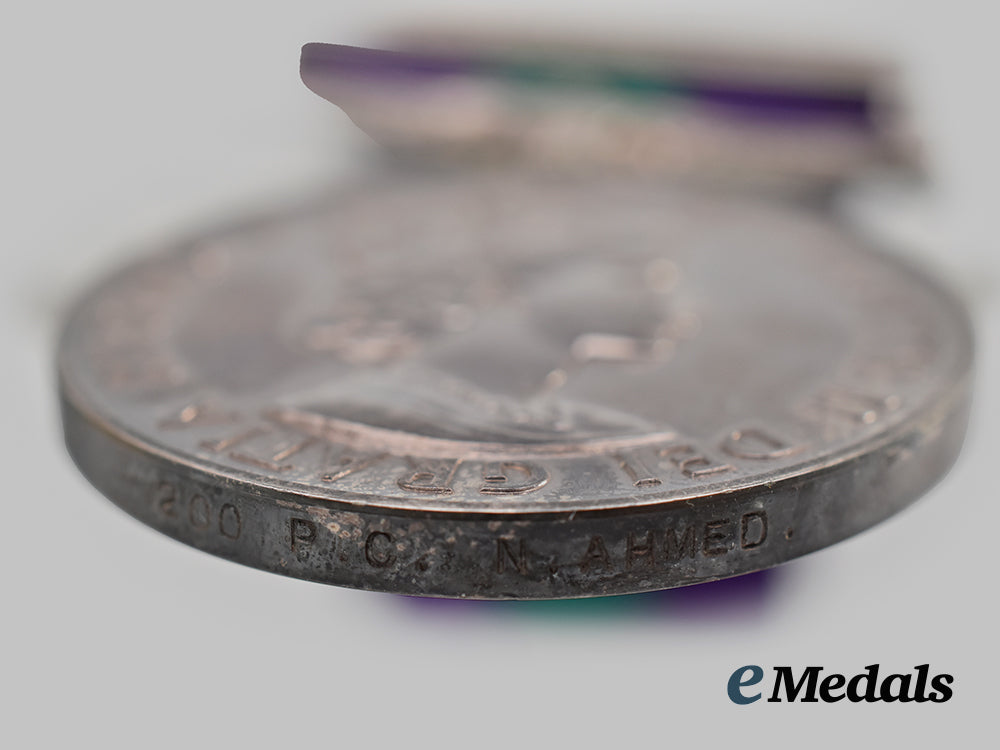 1. General Service Medal, to Police Constable N. Ahmed: QEII, CYPRUS (200 P.C. N. AHMED.). In silver, naming is impressed in small capitals, measuring 36.3 mm in diameter, contact marks, original ribbon.