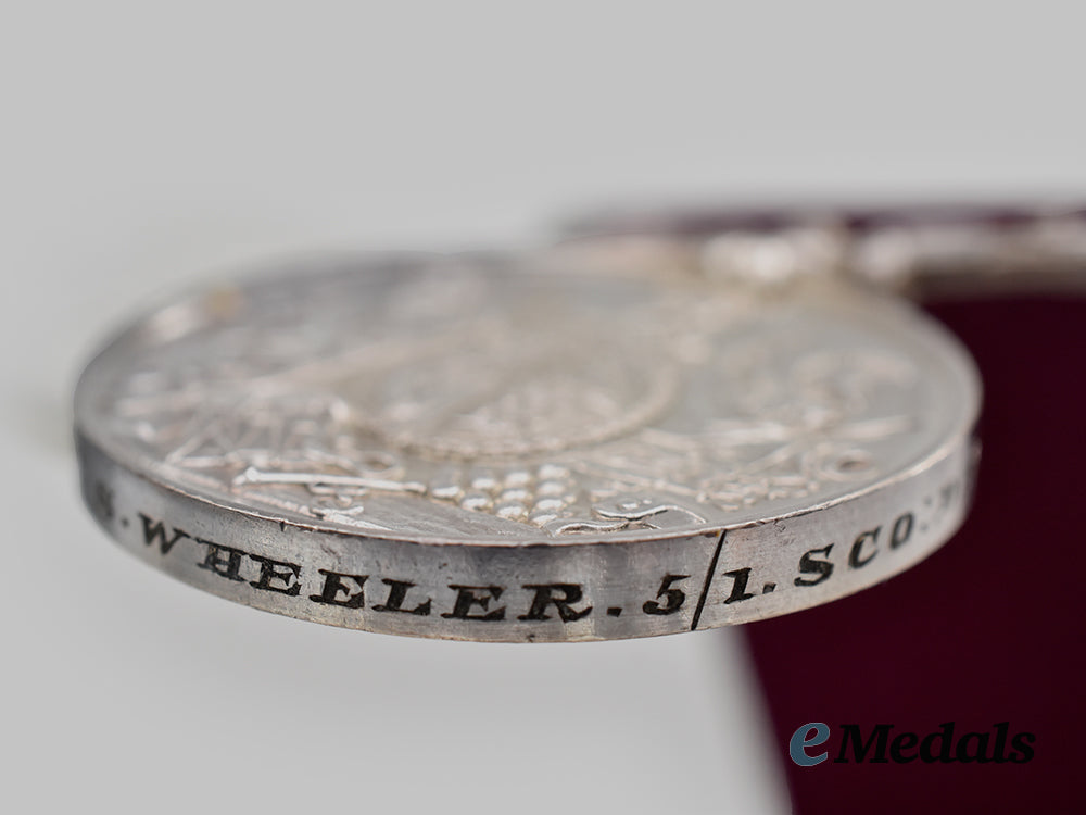 2. Army Long Service and Good Conduct Medal, to Battery Quarter Master Sergeant Samuel Wheeler, 5th Battalion, 1st Scottish Division, Royal Artillery: (20144. By. Qr. Mr. Sgt. S. WHEELER. 5/1. SCO: DIV: R.A.). In silver, naming is engraved in italic capitals, measuring 36.3 mm in diameter, edge nicks, contact marks, replacement ribbon, comes with a typewritten biography of Wheeler.