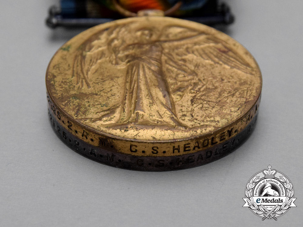British War Medal (22925. 2. A.M. C.S. HEADLEY. R.A.F.); and Victory Medal (22925. 2. A.M. C.S. HEADLEY. R.A.F.). Naming is officially impressed. Un-mounted, original ribbons, very dark patina on the BWM, gilt wear on the VM, contact marks, very fine.