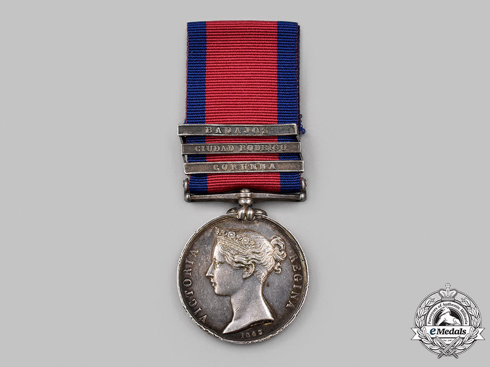 Footnote: The Military General Service Medal was established by General Order on June 1, 1847. The Medal was retroactively awarded to all Officers, Non-Commissioned Officers and enlisted men of the British Army who served in battles during the period of 1793-1814, including those in the French Revolutionary Wars (1792-1902), the Napoleonic Wars (1803-1815), and the Anglo-American War of 1812.