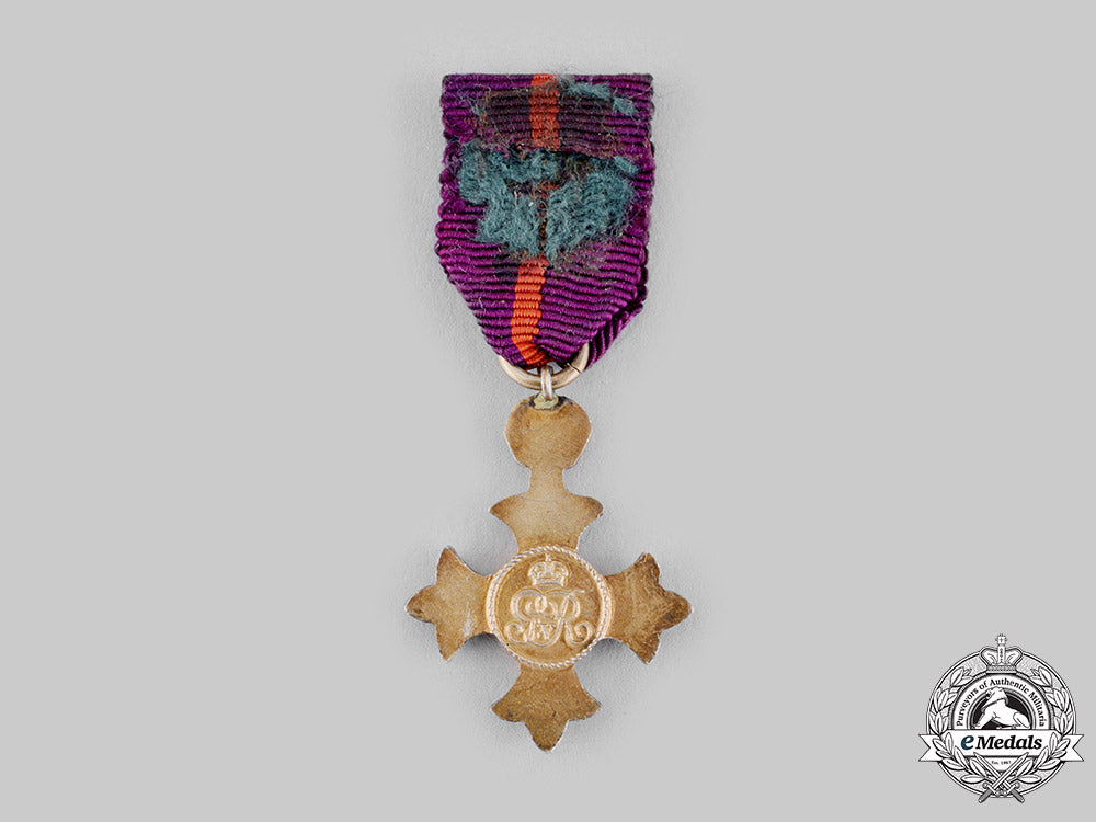 Britannia First Type. In silver gilt with red and light blue enamels, cypher of King George V on the reverse, measuring 22 mm (w) x 29.7 mm (h), intact enamels, original first type military ribbon, extremely fine.