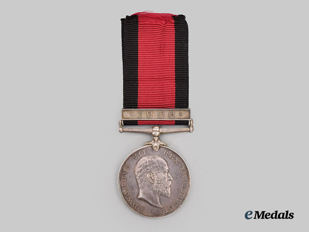 Footnote: The Natal Native Rebellion Medal is a British campaign medal, authorized in 1907, for service in Natal during a Zulu revolt against British rule and taxation in 1906. The 1906 Clasp to the medal was awarded to those who had served for more than fifty days.