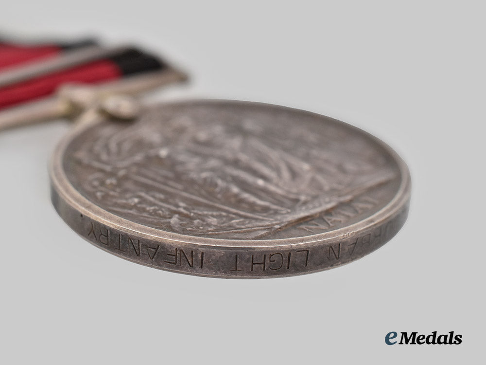 1 Clasp - 1906 (CPL: W.K. HOSKINS, DURBAN LIGHT INFANTRY.). In silver, naming is engraved in large capitals, with an official correction after the "K.", as evidenced by a ghosted "H" (for HOSKINS) before his actual surname, measuring 36.3 mm in diameter, edge nicks, light contact overall, replacement ribbon, better than very fine.