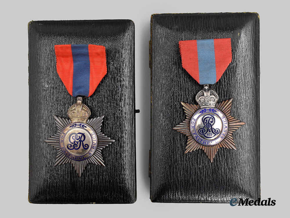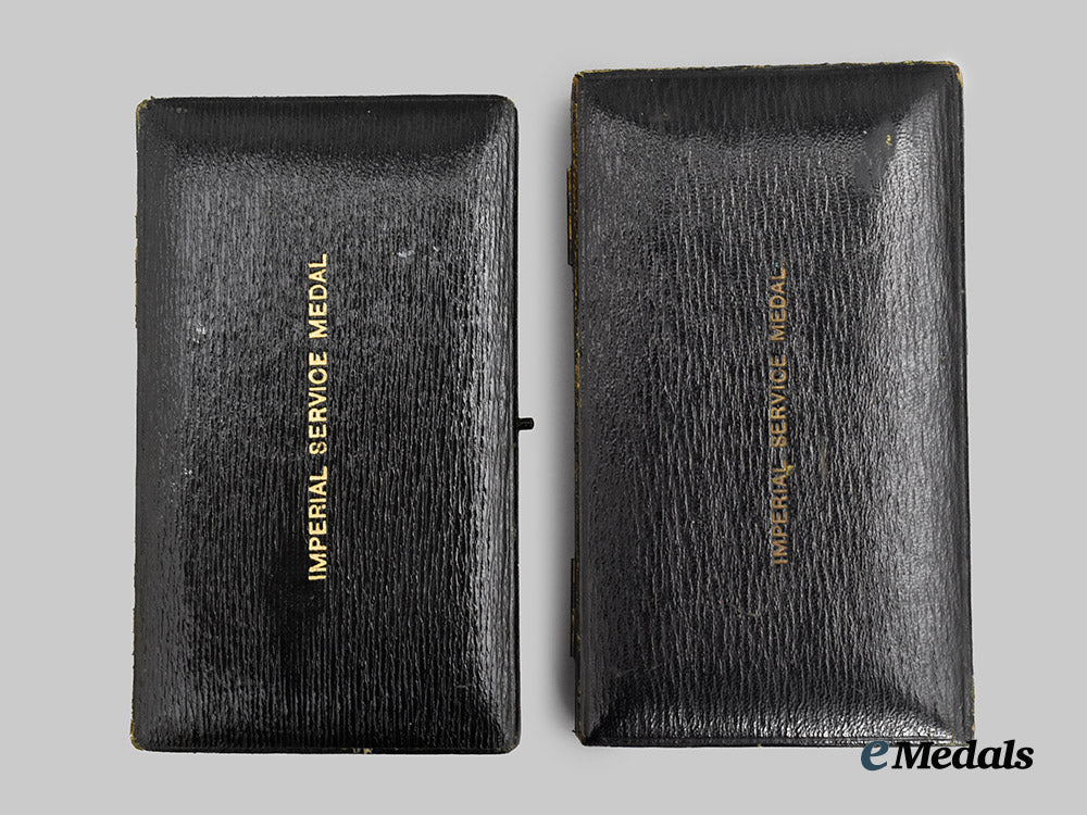 United Kingdom. A Pair of Imperial Service Medals, in Case.